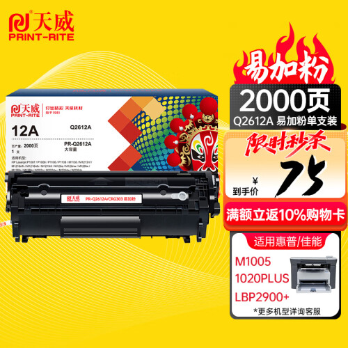 当前的位置: 首页 > 今日值得买 > 天威 2612a硒鼓 12a易加粉 适用惠普m1005硒鼓1020 q2612a hp 1020plus墨粉 佳能lbp2900打印机墨盒 惠普12a