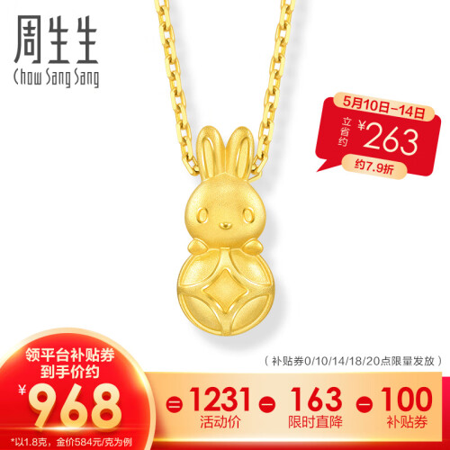 当前的位置: 首页 > 今日值得买 > 周生生黄金吊坠 足金兔年生肖有钱兔挂坠 不含素链 93681P计价1.7克