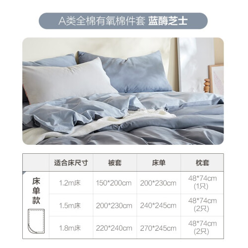 当前的位置: 首页 > 今日值得买 > 网易严选【100%新疆棉】有氧纯棉四件套A类枕套床上用品床被套罩床单纯棉 蓝酶芝士(蓝灰)100%全棉 【四件套】1.8m床:2.2*2.4m被芯