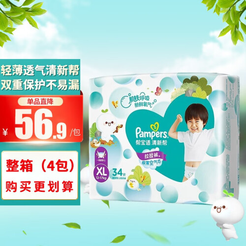 当前的位置: 首页 > 今日值得买 > 帮宝适(Pampers)婴儿尿不湿 清新帮成长裤 学步裤 加大码 XL34片(12-17KG)