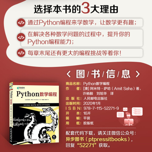 当前的位置: 首页 > 今日值得买 > Python数学编程 Python编程从入门到实践 Python基础教程 Python数据分析数据科
