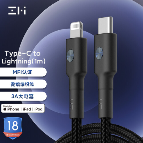 当前的位置: 首页 > 今日值得买 > ZMIMFi认证苹果C转Lightning数据线PD18W/20W快充适用于iPhone14/13Pro Max/12/11闪充线 AL873K黑
