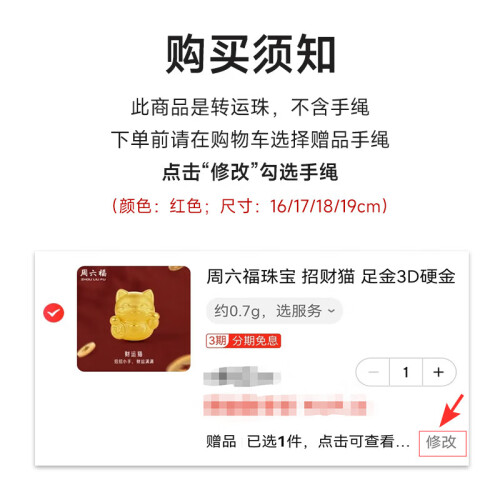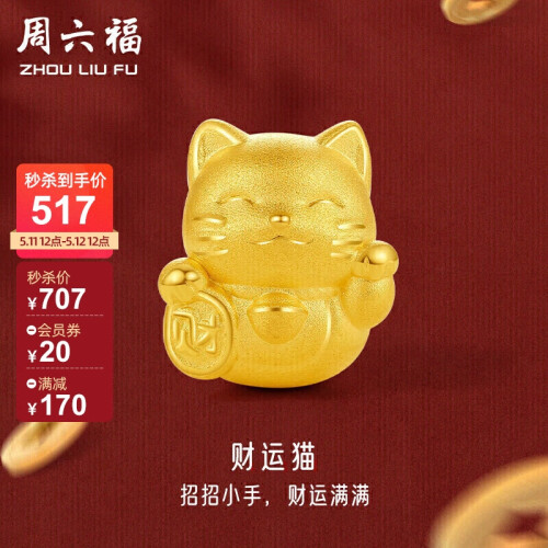 当前的位置: 首页 > 今日值得买 > 周六福珠宝 招财猫 足金3D硬金黄金转运珠男女款 定价 A1610417 约0.7g