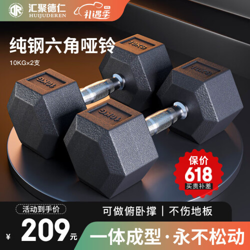 当前的位置: 首页 > 今日值得买 > 汇聚德仁(huijuderen)六角哑铃纯钢健身哑铃男士女士环保家用健身器材组合一体成型 【纯钢】20KG一副=10kg*2只