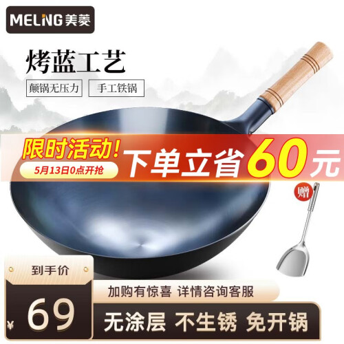 当前的位置: 首页 > 今日值得买 > 美菱(MeiLing)炒锅炒菜锅无涂层老式熟铁锅不粘锅章丘捶打铁锅爆炒锅圆底燃气灶 烤蓝铁锅32cm+锅铲