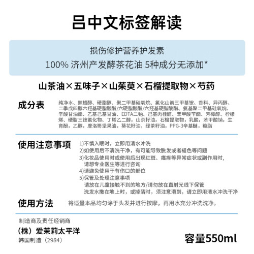 当前的位置: 首页 > 今日值得买 > 吕(Ryo)韩国进口红吕染烫修护损伤护发素550ml修护受损改善毛躁莹润亮泽