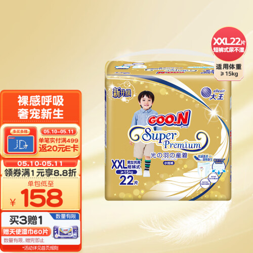 当前的位置: 首页 > 今日值得买 > 大王GOO.N光羽短裤型尿不湿 XXL22片(15kg以上)婴儿特大号羽感透气