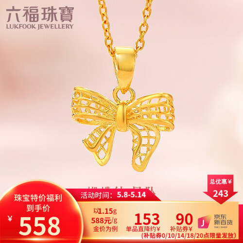 当前的位置: 首页 > 今日值得买 > 六福珠宝 足金在逃公主蝴蝶结黄金吊坠不含项链送礼 计价 F95TBGP0003 1.15克(含工费125元)
