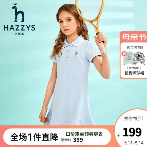 当前的位置: 首页 > 今日值得买 > HAZZYS品牌童装女童Polo裙夏季新款儿童女童休闲时尚polo连衣裙中大童 冰晶蓝 105
