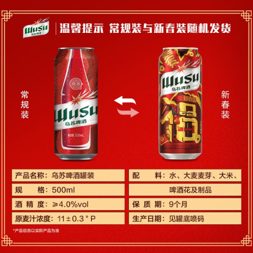 当前的位置: 首页 > 今日值得买 > 乌苏啤酒(wusu)大红乌苏 烈性 啤酒整箱装 500ml*12*2箱共24罐 整箱装