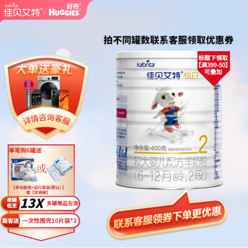 当前的位置: 首页 > 今日值得买 > 佳贝艾特(Kabrita)婴儿羊奶粉 悦白 悠装pro 荷兰原装原罐进口 悦白Ⅱ段400g