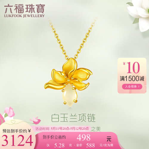 当前的位置: 首页 > 今日值得买 > 六福珠宝 母亲节礼物足金和田玉白玉兰黄金项链金镶玉套链 计价 GDGTBN0009 约5.28克