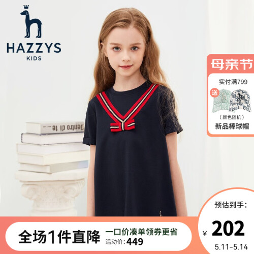 当前的位置: 首页 > 今日值得买 > 哈吉斯(HAZZYS)童装哈吉斯女童裙式上衣夏季新品T恤中大童纯色学院风短袖T恤裙 藏蓝 110cm