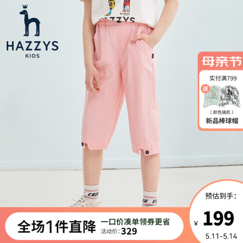 当前的位置: 首页 > 今日值得买 > 哈吉斯(HAZZYS)童装男女童儿童裤子夏季新品中大童纯色休闲七分裤 粉艾尔 120cm