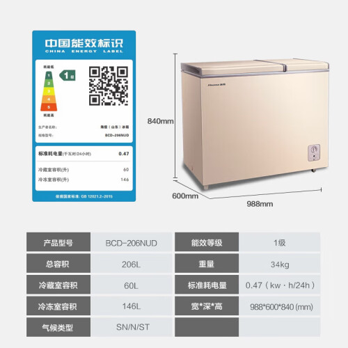 当前的位置: 首页 > 今日值得买 > 海信(Hisense) 冰柜家用双温大冷柜206升 冷藏冷冻柜 一级能效净化保鲜柜BCD-206NUD家庭母乳茶叶柜