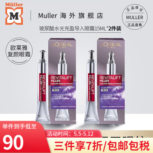当前的位置: 首页 > 今日值得买 > 欧莱雅(LOREAL)欧版复颜玻尿酸水光充盈全脸淡纹眼霜 紫熨斗眼霜玻色因送女友送老婆 15ml*2