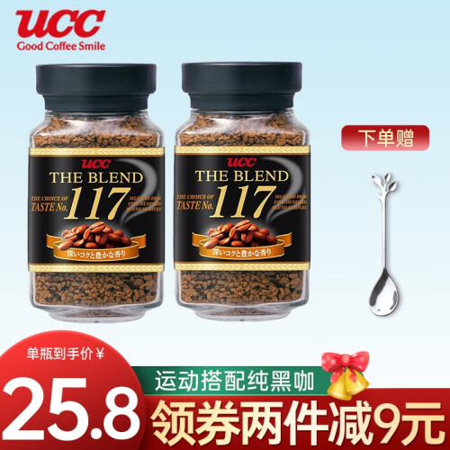 当前的位置: 首页 > 今日值得买 > 悠诗诗(UCC)速溶黑咖啡粉日本进口冻干无蔗糖咖啡健身饮品自制生椰拿铁原料 UCC117黑咖啡*2瓶