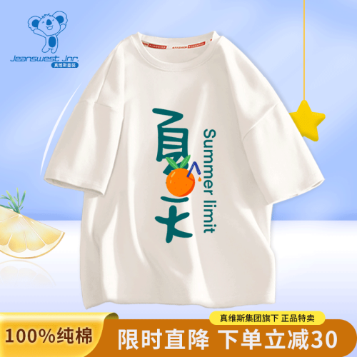 当前的位置: 首页 > 今日值得买 > 真维斯(Jeanswest)儿童短袖t恤2023新款男童纯棉宽松圆领夏季中大童运动休闲上衣 白衣夏天橙汁 110