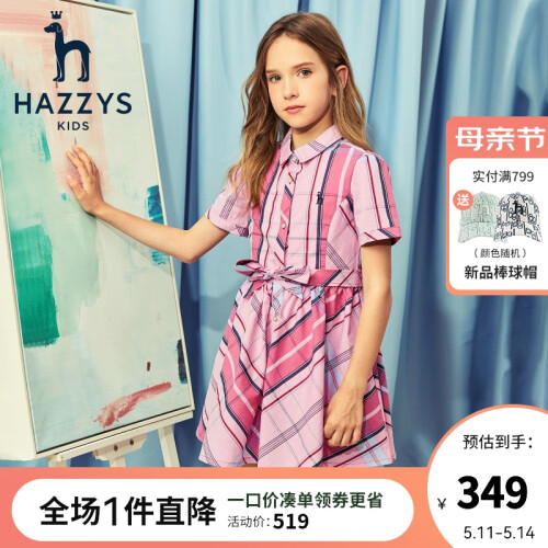 当前的位置: 首页 > 今日值得买 > HAZZYS哈吉斯品牌童装女童连衣裙夏季新品中大童短袖设计格子裙 糖心粉 160cm