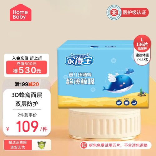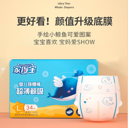 当前的位置: 首页 > 今日值得买 > 家得宝(homebaby)蓝鲸超薄透气男女宝宝通用尿不湿 L码 136片