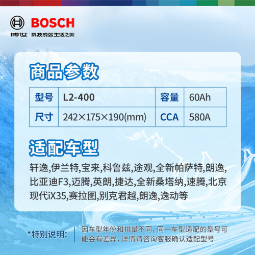 当前的位置: 首页 > 今日值得买 > 博世(BOSCH)汽车电瓶蓄电池动力神免维护L2-400 12V上门安装 以旧换新