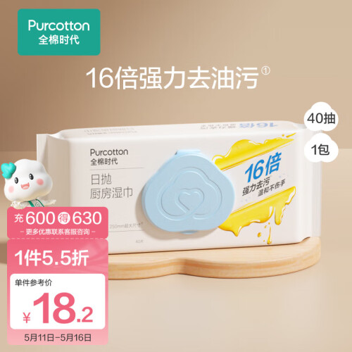 当前的位置: 首页 > 今日值得买 > 全棉时代(PurCotton)厨房湿巾抹布擦巾不掉毛可除幽门杆菌厨房用纸去油污40片/包*1