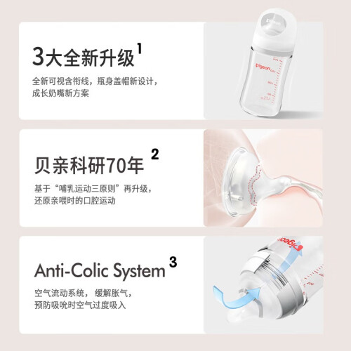 当前的位置: 首页 > 今日值得买 > 贝亲(Pigeon)奶瓶新生婴儿玻璃宽口径奶瓶 自然实感第3代 240ML配M奶嘴(适用3-6个月)