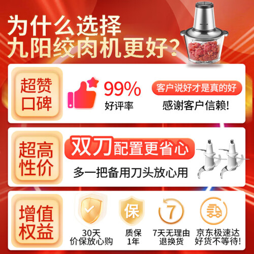 当前的位置: 首页 > 今日值得买 > 九阳(Joyoung)绞肉机家用电动多功能料理机搅拌婴儿辅食切菜绞馅不锈钢碎打肉研磨A808(D)