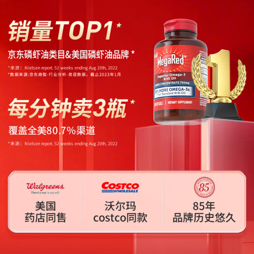 当前的位置: 首页 > 今日值得买 > 旭福 MegaRed脉拓南极磷虾油750mg软胶囊80粒(美国进口omega-3脂肪酸鱼油升级磷脂虾青素dha成人中老年人)