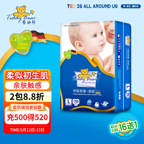 当前的位置: 首页 > 今日值得买 > 泰迪熊Teddy Bear亲肤纸尿裤L70片(9-14公斤)婴儿尿不湿