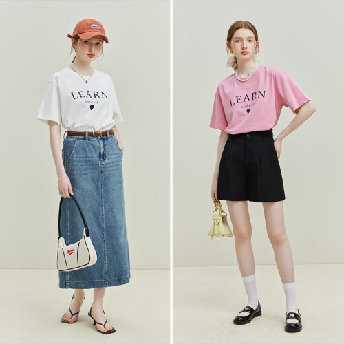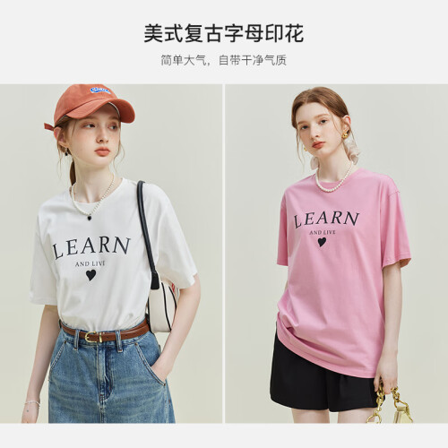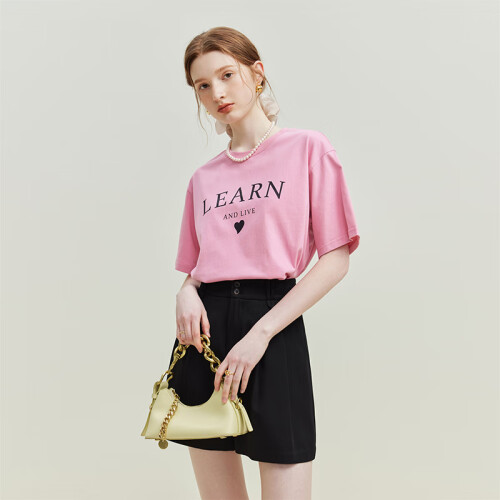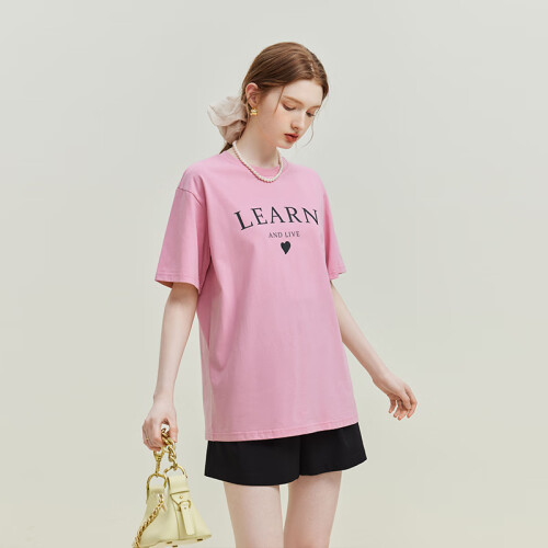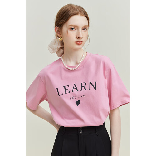 当前的位置: 首页 > 今日值得买 > 范思蓝恩23FS12317约会氛围感两色字母印花T恤通勤简约直筒短袖女 童话粉 M