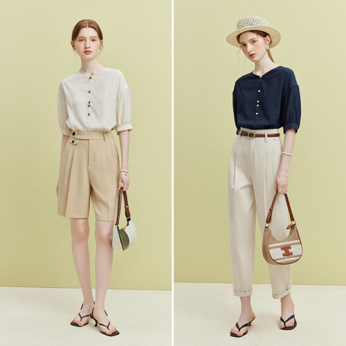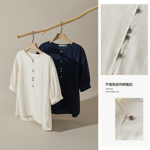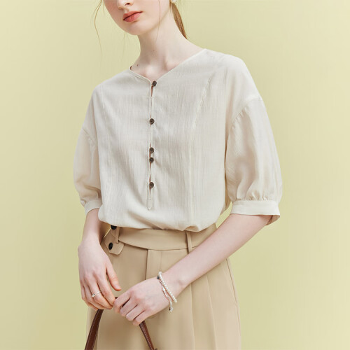 当前的位置: 首页 > 今日值得买 > 范思蓝恩23FS12565慵懒感氛围两色衬衫女夏季新款五分袖套头上衣 杏色 M