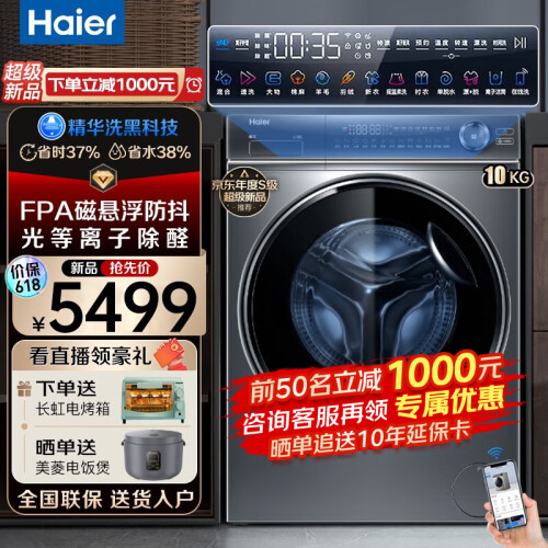 当前的位置: 首页 > 今日值得买 > 海尔(Haier)洗衣机368精华洗10KG直驱变频滚筒洗衣机全自动晶彩智能投放 以旧换新 精华洗+光等离子除菌祛味除醛/护理/新风+智能投放