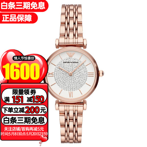 当前的位置: 首页 > 今日值得买 > 阿玛尼(ARMANI)女表满天星系列欧美表时尚现货母亲节520情人节礼物送女友 玫瑰金满天星 - AR11244