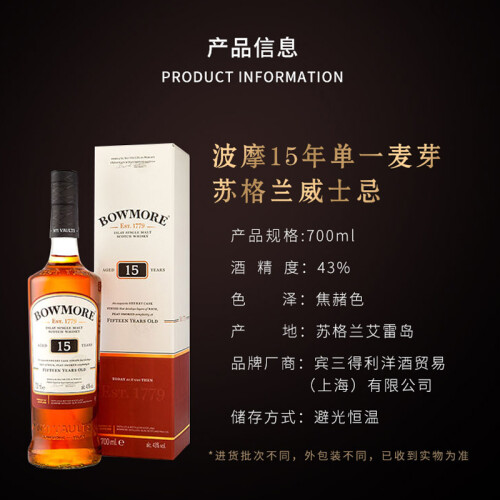 当前的位置: 首页 > 今日值得买 > 波摩(Bowmore)15年 苏格兰 艾雷岛产区 单一麦芽 威士忌 洋酒 700ml