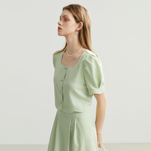 当前的位置: 首页 > 今日值得买 > 范思蓝恩22FS2574复古时尚衬衫短袖女夏款时尚洋气上衣 气泡绿 衬衫 S