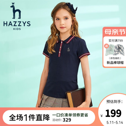 当前的位置: 首页 > 今日值得买 > HAZZYS哈吉斯童装女童T恤儿童短袖夏季新品中大童Polo衫简约上衣 深藏蓝 130