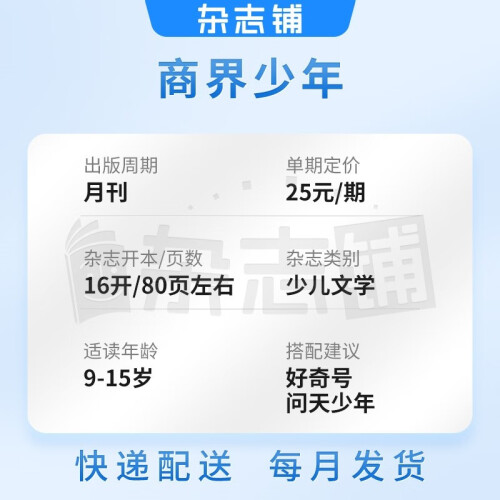 当前的位置: 首页 > 今日值得买 > 【单期订阅】现货包邮 商界少年杂志 2023年1/2/3/4/5/6月期数自选 共1期 杂志铺订阅 9-15岁孩子打造的少年财商素养启蒙培养财经 商界少年2023年5月