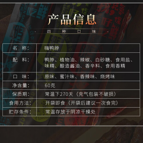 当前的位置: 首页 > 今日值得买 > 周小贱 原味风干长鸭脖60g/根 手撕鸭脖 氮气鸭脖子整根 卤味零食小吃