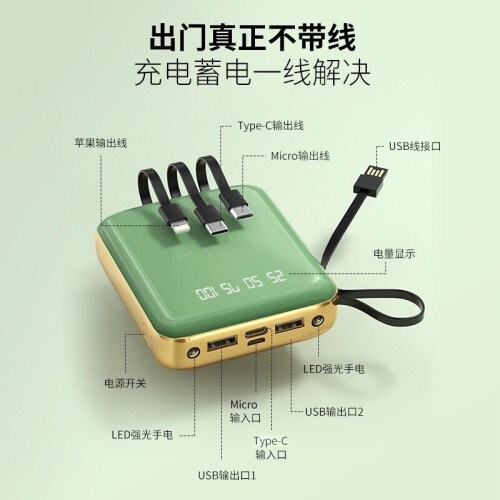 当前的位置: 首页 > 今日值得买 > 倍量 充电宝自带线20000大容量超薄小巧迷你快充便携式三合一适用苹果华为小米红米移动电源 青草绿