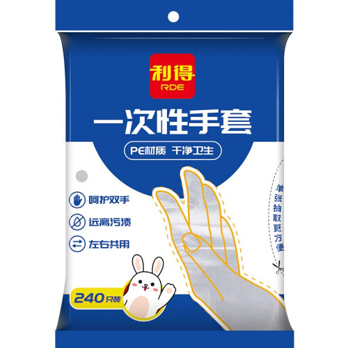 当前的位置: 首页 > 今日值得买 > 利得一次性清洁用品隔离防护手套240只装 食品级PE手套 烧烤夜宵龙虾
