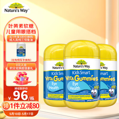 当前的位置: 首页 > 今日值得买 > Nature’s Way佳思敏儿童叶黄素维生素护眼软糖3瓶装 叶黄素护眼青少年 蓝莓叶黄素儿童 澳洲进口 50粒/瓶