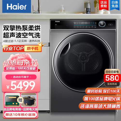当前的位置: 首页 > 今日值得买 > 海尔(Haier)热泵烘干机干衣机家用 10KG滚筒式 纤美176烘干机376干衣机套装 海尔高端纤美176双擎热泵干衣+大屏+1:1正反转