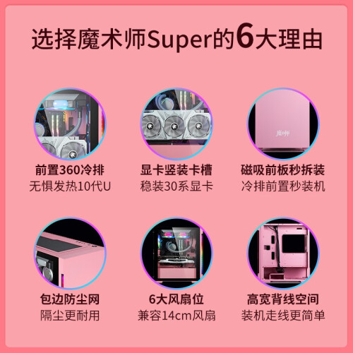 当前的位置: 首页 > 今日值得买 > 金河田(Golden field)魔术师super粉色MINI电脑机箱(钢化玻璃/MATX/ITX/磁吸前面板/360排位/竖装显卡位)