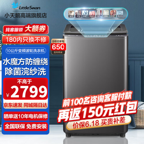 当前的位置: 首页 > 今日值得买 > 小天鹅(LittleSwan)水魔方直驱变频波轮洗衣机全自动 10公斤家用 防缠绕 纳米银离子除菌 智能家电 TB100S87 健康除螨洗