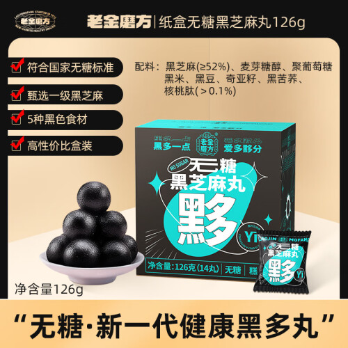 当前的位置: 首页 > 今日值得买 > 老金磨方 无糖黑芝麻丸黑芝麻黑米黑豆奇亚籽健康即食小丸子126g