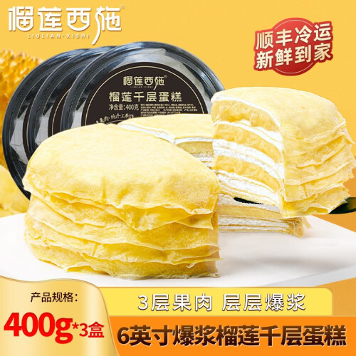 当前的位置: 首页 > 今日值得买 > 榴莲西施(liulianxishi)金枕榴莲千层蛋糕6英寸 办公室下午茶甜品生日新鲜蛋糕 榴莲千层6英寸400g*3盒