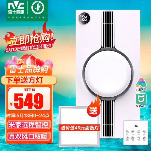 当前的位置: 首页 > 今日值得买 > 雷士(NVC)双出风米家智能浴霸暖风排气扇照明一体卫生间浴室取暖器集成吊顶 【2700W】米家智控|真双风口