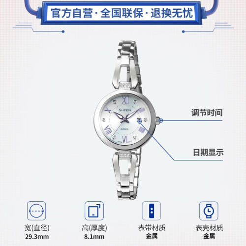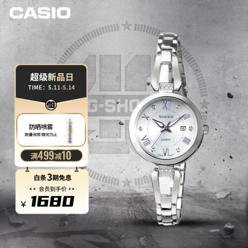 当前的位置: 首页 > 今日值得买 > 卡西欧(CASIO)手表 SHEEN系列时尚简约太阳能镜面防水女表 SHS-4526D-7A