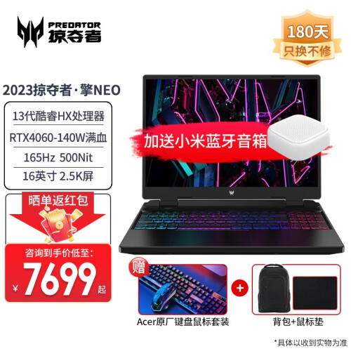 宏碁(acer) 宏碁2023款掠夺者·擎Neo/战斧300 暗影骑士Pro 4060游戏本骨灰级玩家电竞笔记本电脑 擎Neo 13500HX-RTX4060/2.5K 电竞版:16G / 512G